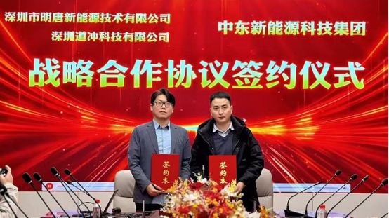 2025年10月23日,中東新能源科技集團(簡稱“中東新能源”)與深圳市明唐新能源技術(shù)有限公司、深圳道沖科技有限公司經(jīng)過深入洽談,正式簽署戰(zhàn)略合作協(xié)議。開啟三方在綠色能源項目落地與智慧出行產(chǎn)業(yè)升級的協(xié)同合作,為行業(yè)資源整合與生態(tài)構(gòu)建注入新動能。